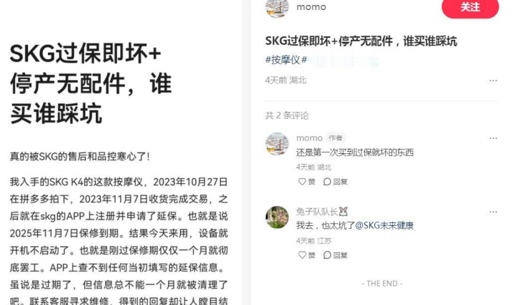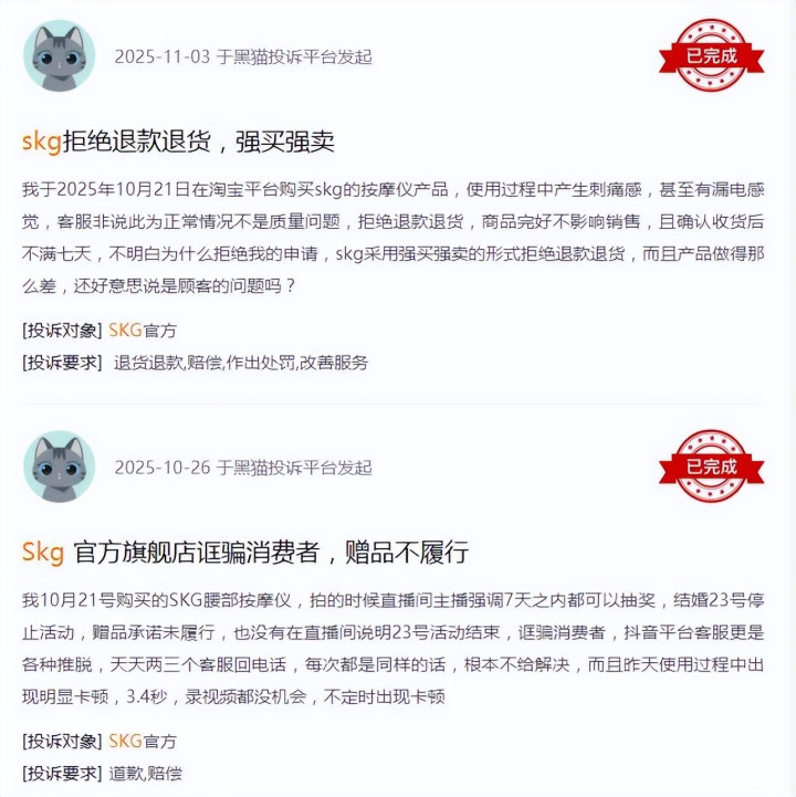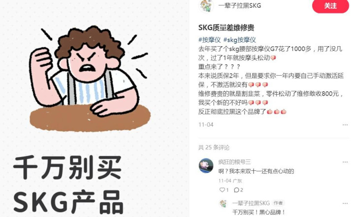 在黑猫投诉平台,有多起网友发起投诉的案例,包括但不限于产品质量、效果、售后服务等缘由。在小红书平台,亦有很多网友的踩坑、避雷帖……